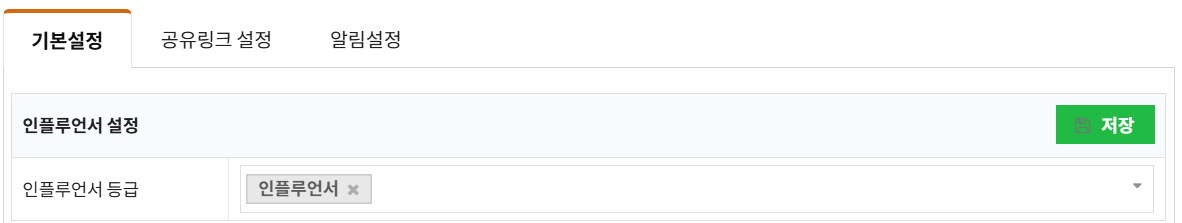 플러그인 설정 메뉴는 [엠샵 포인트 > 인플루언서 설정 > 기본설정]입니다.