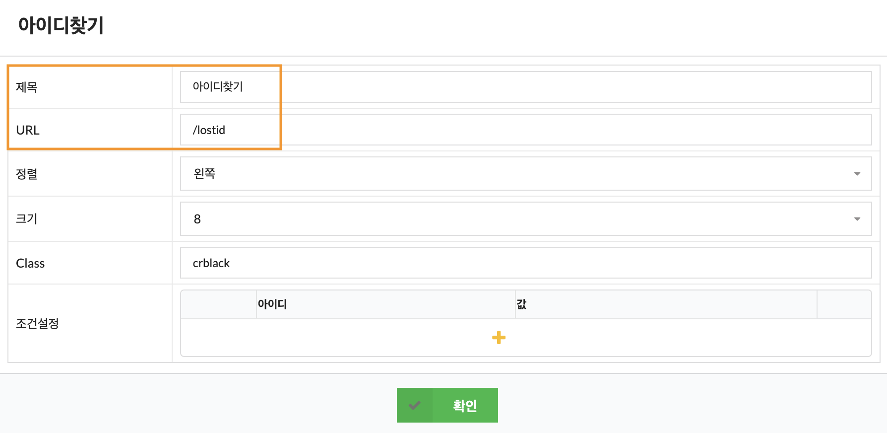 매뉴얼을 참고하여 [페이지 > 페이지 추가]에서 아이디 찾기용 페이지를 생성합니다.