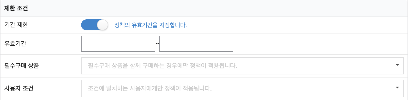 활성화 버튼을 통해 현재 정책의 활성화 상태를 한눈에 확인 해보실 수 있으며, 클릭 시 활성화 상태 조절이 가능합니다.
