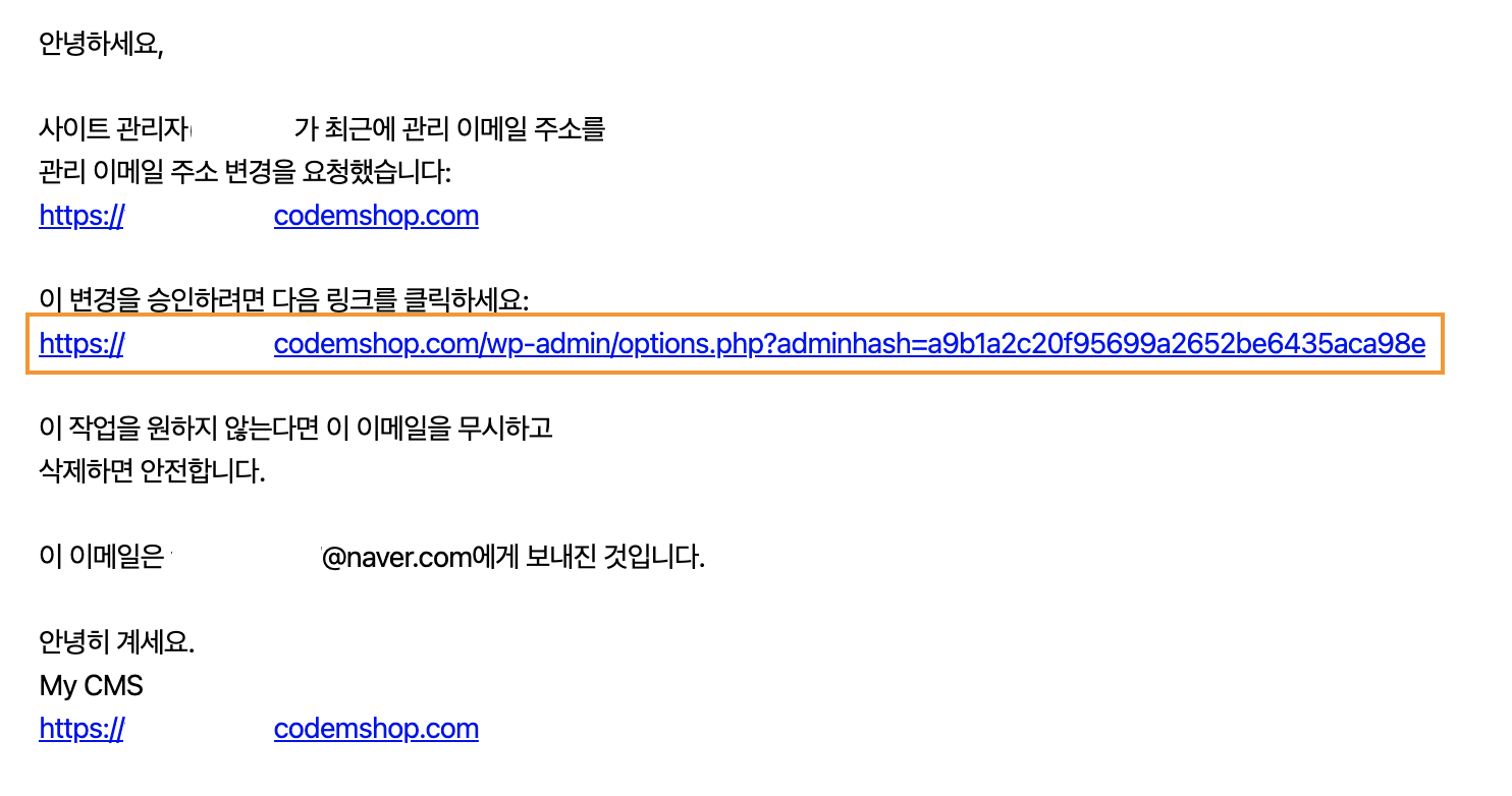 변경을 요청한 메일로 변경된 것을 확인할 수 있습니다.