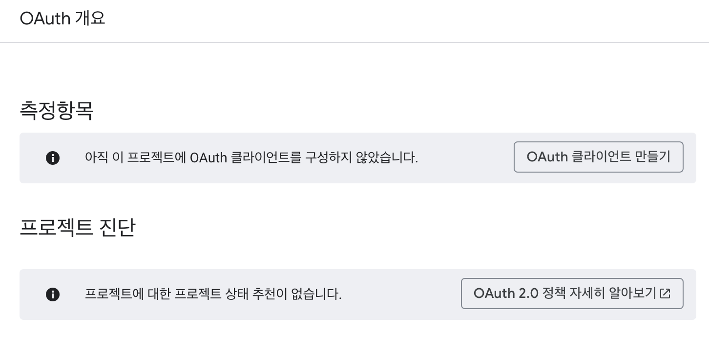 OAuth 클라이언트 만들기 버튼을 클릭합니다.