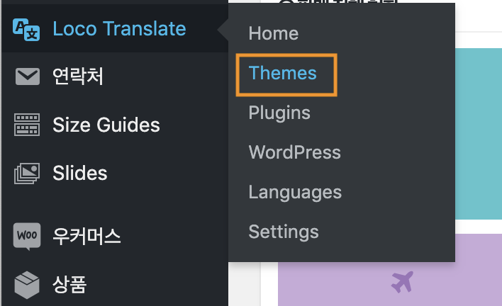 관리자 메뉴 [Loco Translate > 테마]에서 활성화되어 있는 테마의 부모 테마를 클릭합니다.