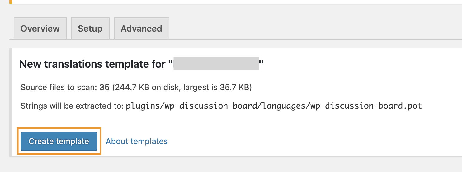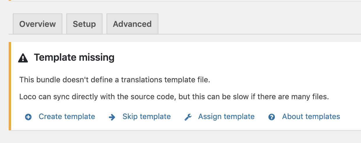 Template missing 알림창이 표시될 경우 좌측의 Create template 버튼을 클릭하여 새로운 언어팩 템플릿을 생성합니다.