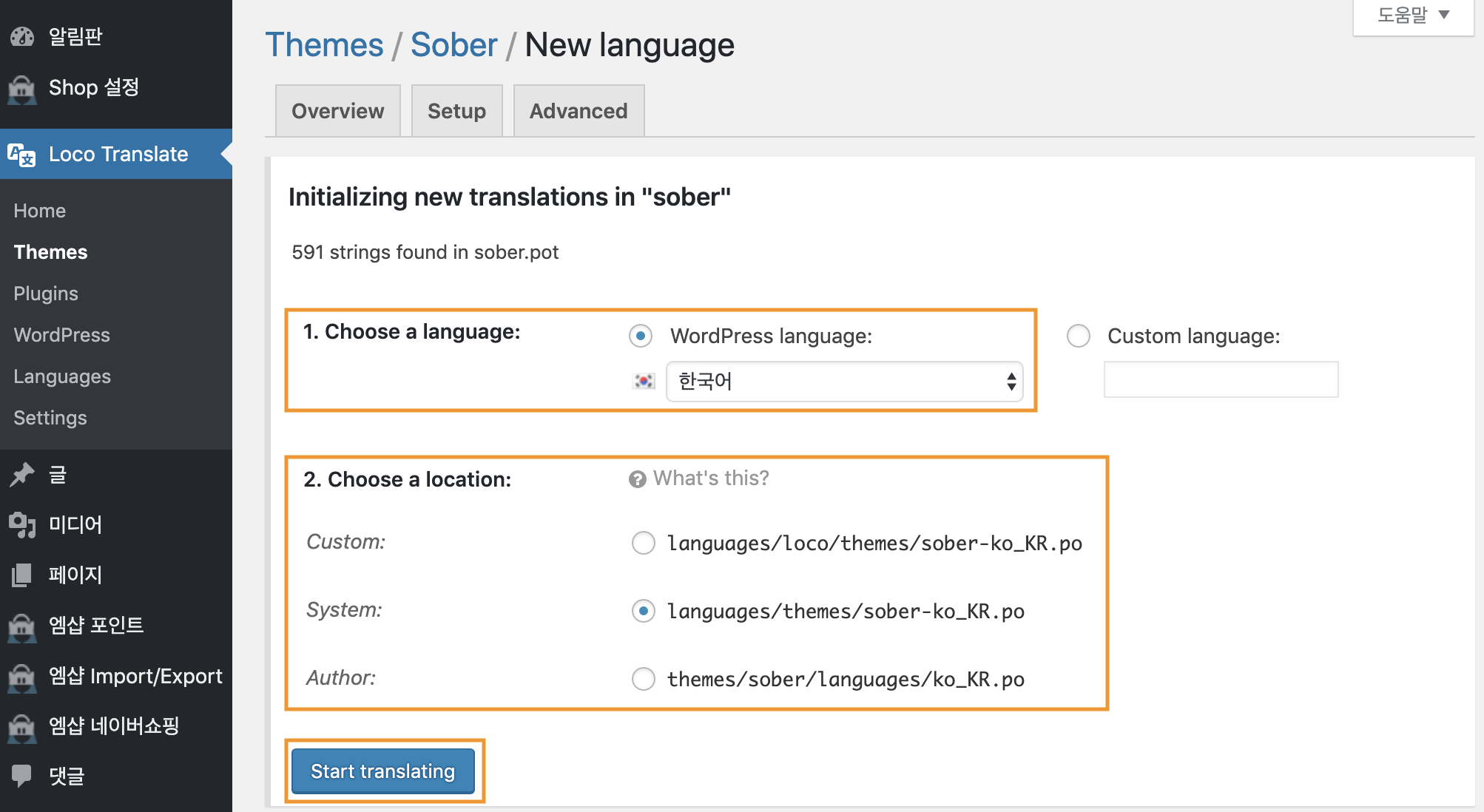 언어팩이 테마에 있을 때 기준으로 설명합니다.