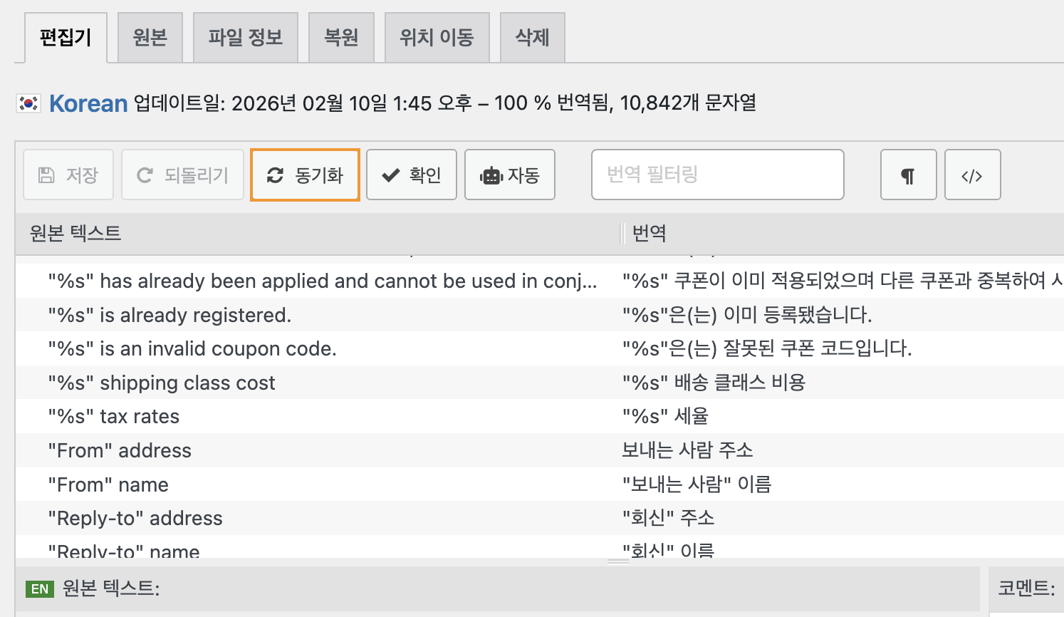 번역하려는 문자열이 어느 플러그인에서 제공하는지 모를 경우 아래 방법으로 확인합니다.