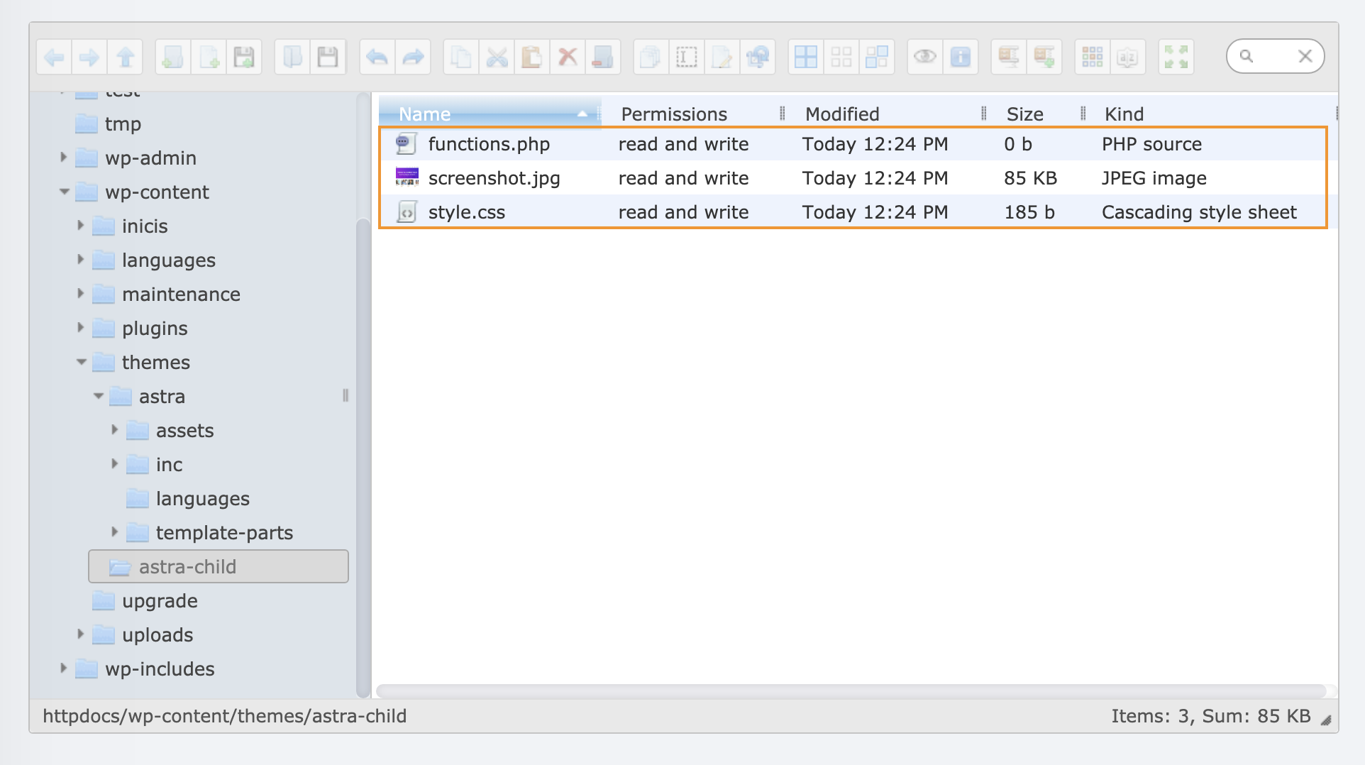 본 매뉴얼은 Astra 테마와 WP File Manager 플러그인을 이용하여 Astra 테마의 차일드 테마를 생성하는 방법에 대해 설명합니다.
