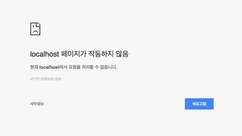 크롬 브라우저로 사이트 접속 시 HTTP ERROR 500이 발생하는지 확인합니다.