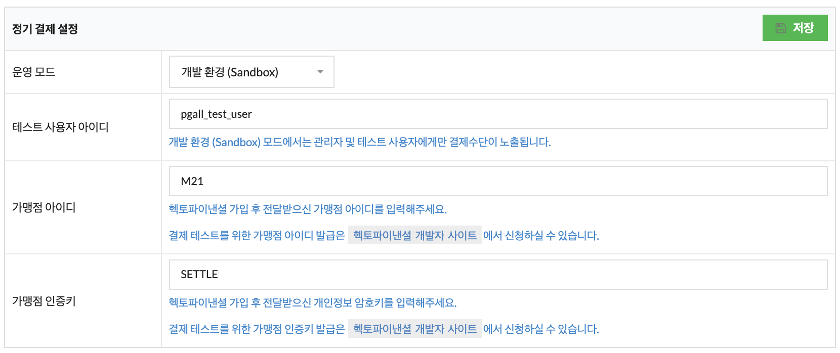 헥토파이낸셜 정기 결제의 운영 모드를 지정할 수 있습니다.