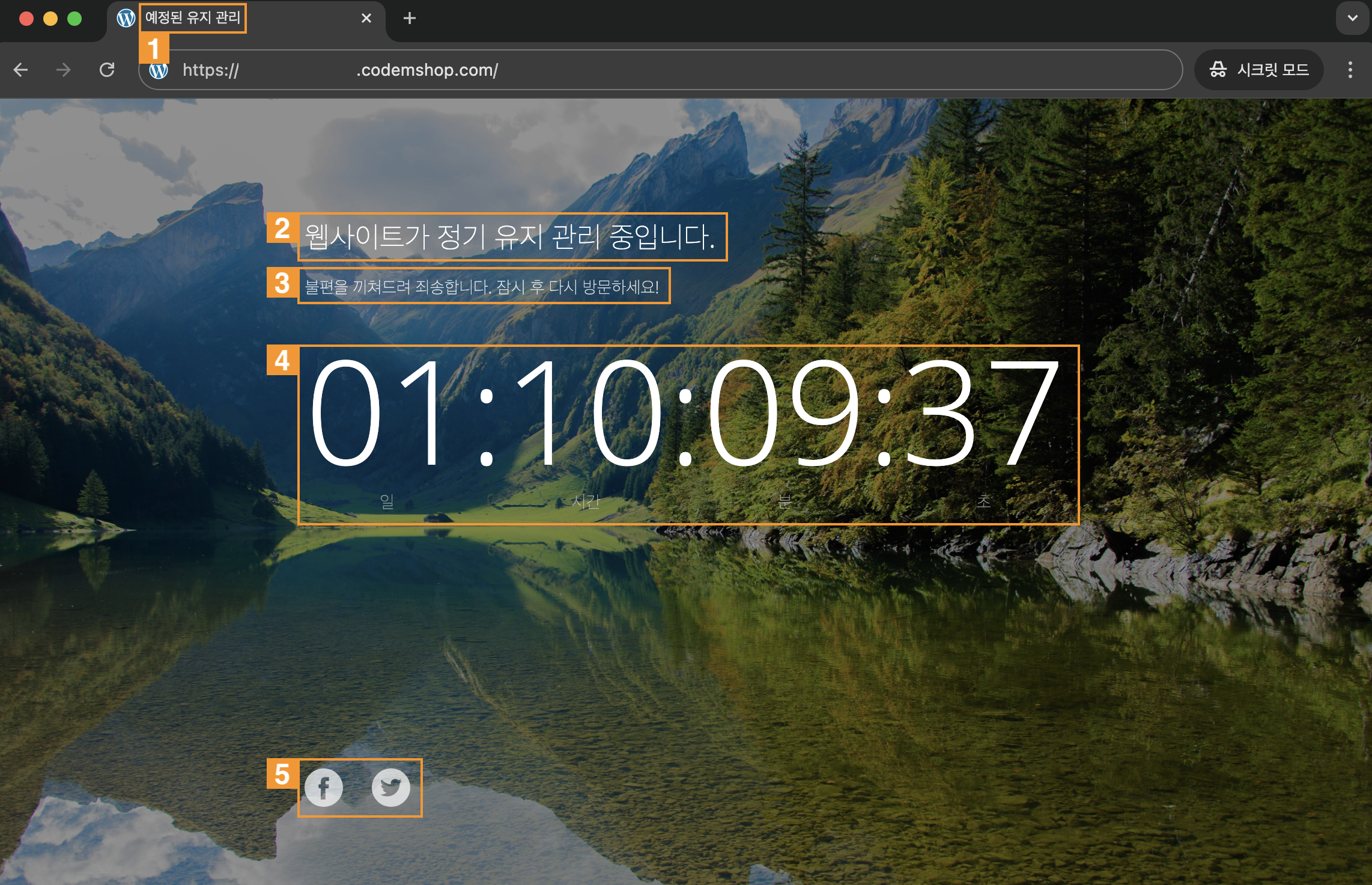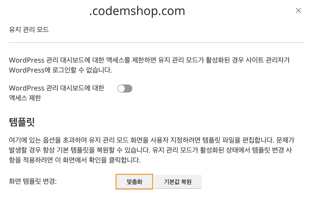 유지 관리 모드 활성화 시 사용자가 웹사이트를 볼 수 없어 콘텐츠를 변경하거나 영향을 주지 않습니다.