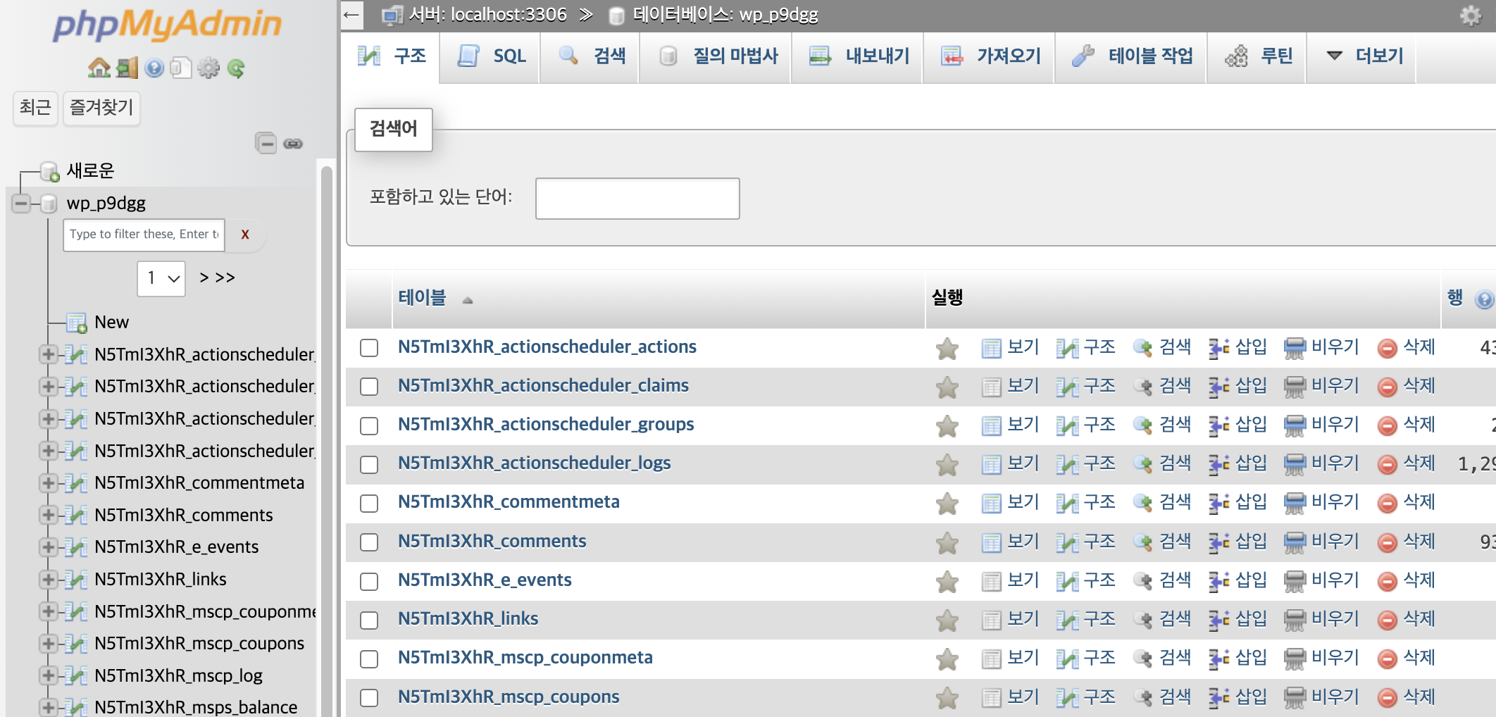 (주의) 데이터베이스의 수정 및 삭제는 사이트에 문제가 발생할 수 있으므로, 수정 및 삭제가 필요한 경우 주의하여 진행해야 합니다.