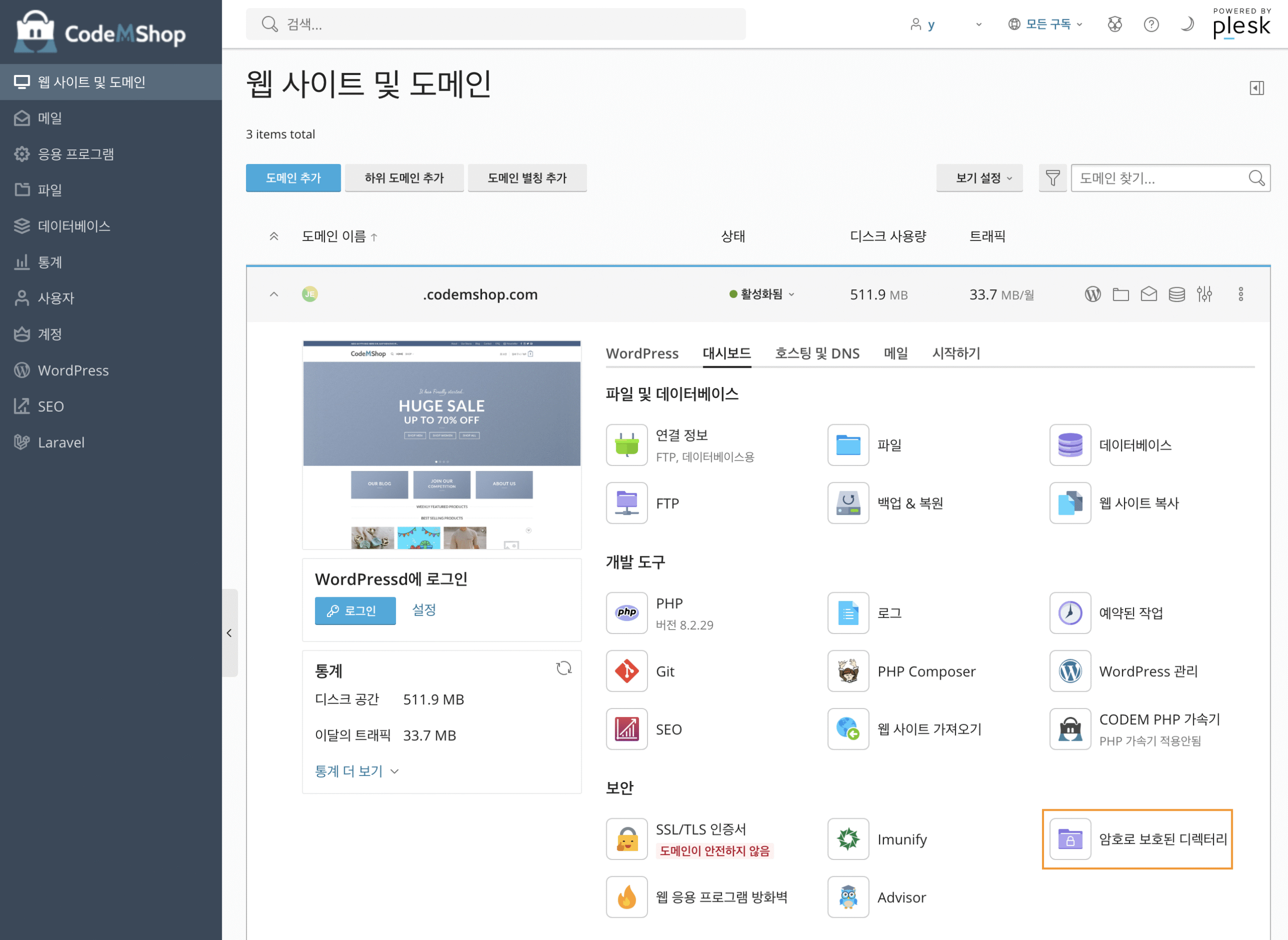 암호로 보호된 디렉토리에서는 사이트 내 특정 폴더를 암호를 설정하여 제한할 수 있습니다.
