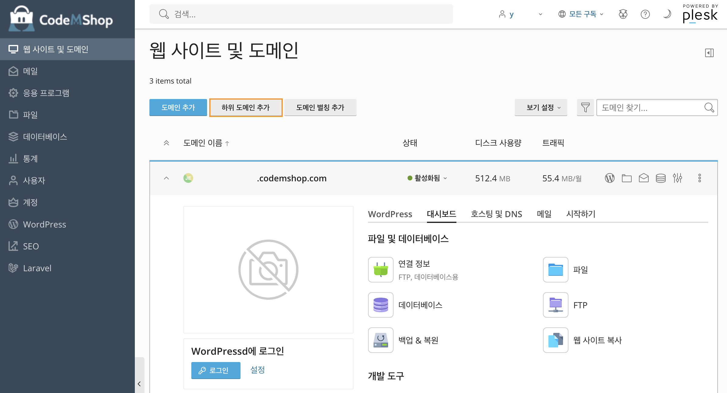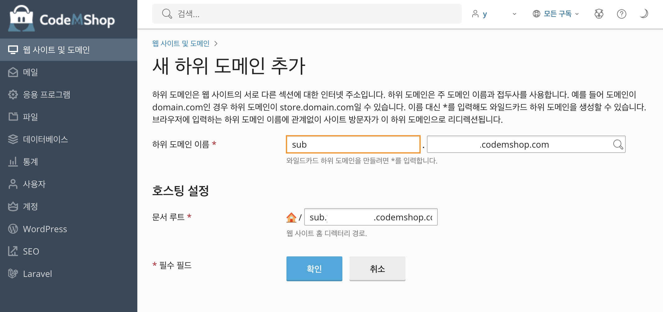 하위 도메인 이름을 지정하고 확인 버튼을 클릭합니다.