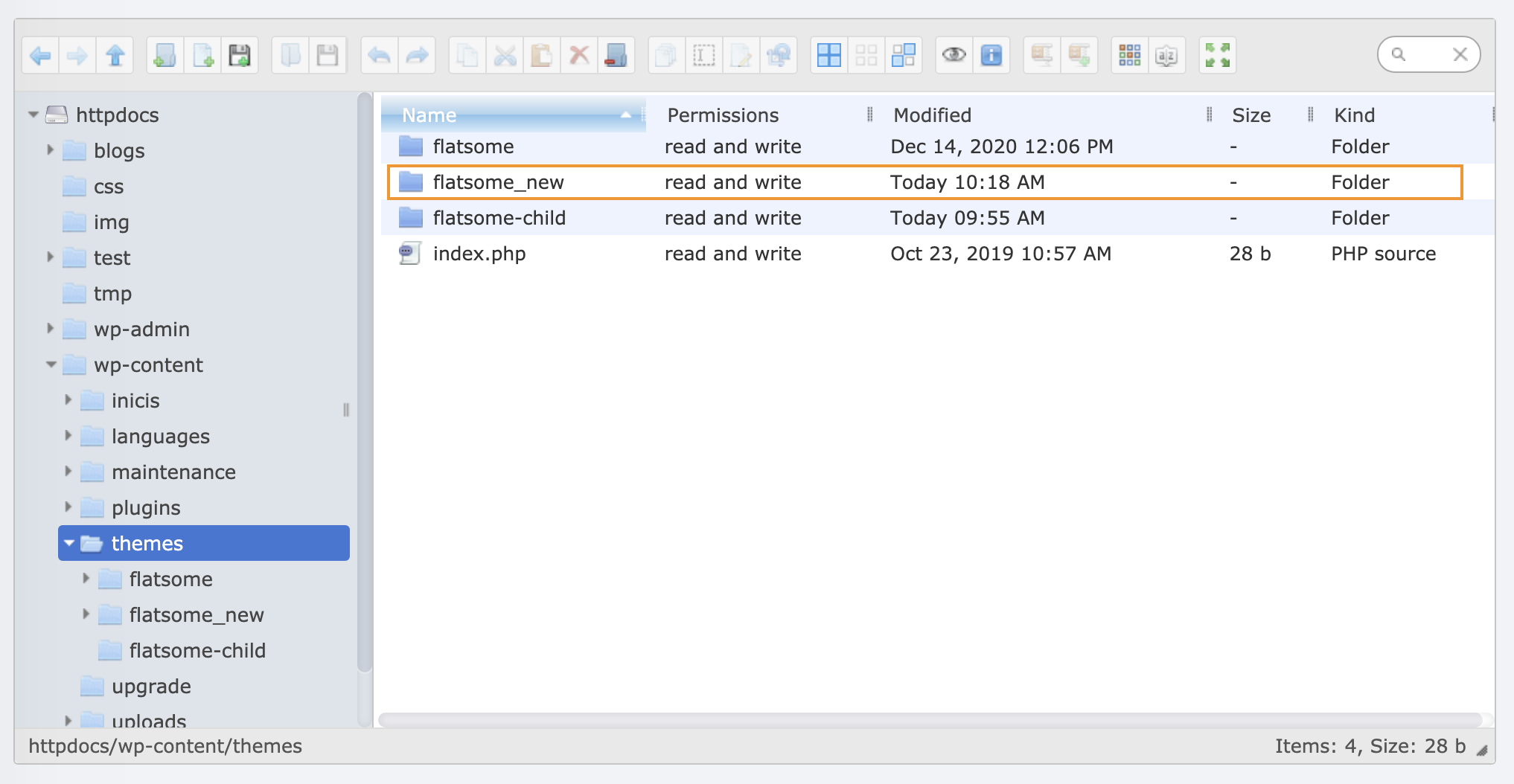 플러그인 또는 FTP를 통해 /wp-content/themes/ 경로에 최신 버전 부모 테마의 이름을 _new와 같이 변경하여 업로드합니다.