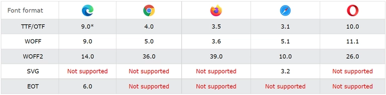브라우저 별 웹 폰트 지원 상황은 아래와 같습니다.