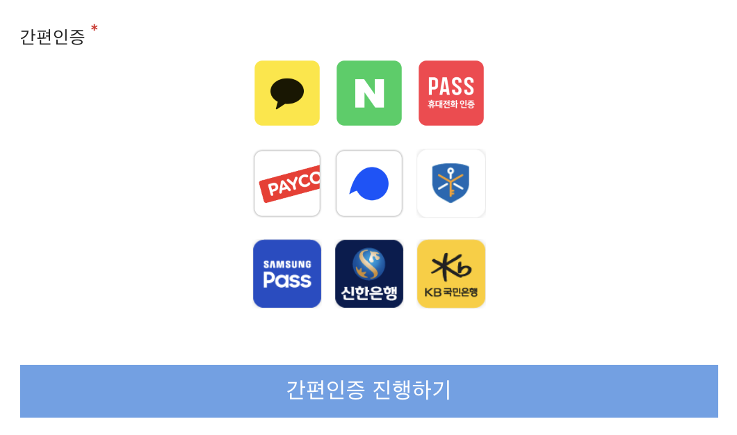 모든 제휴사 가입 심사가 완료되기 전까지 통합인증창으로 설정하면 심사가 완료된 제휴사만 표시됩니다.제휴사별 인증창 (아이콘형)