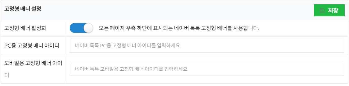 모든 페이지 우측 하단에 따라다니는 네이버 톡톡 배너 기능을 활성화합니다.