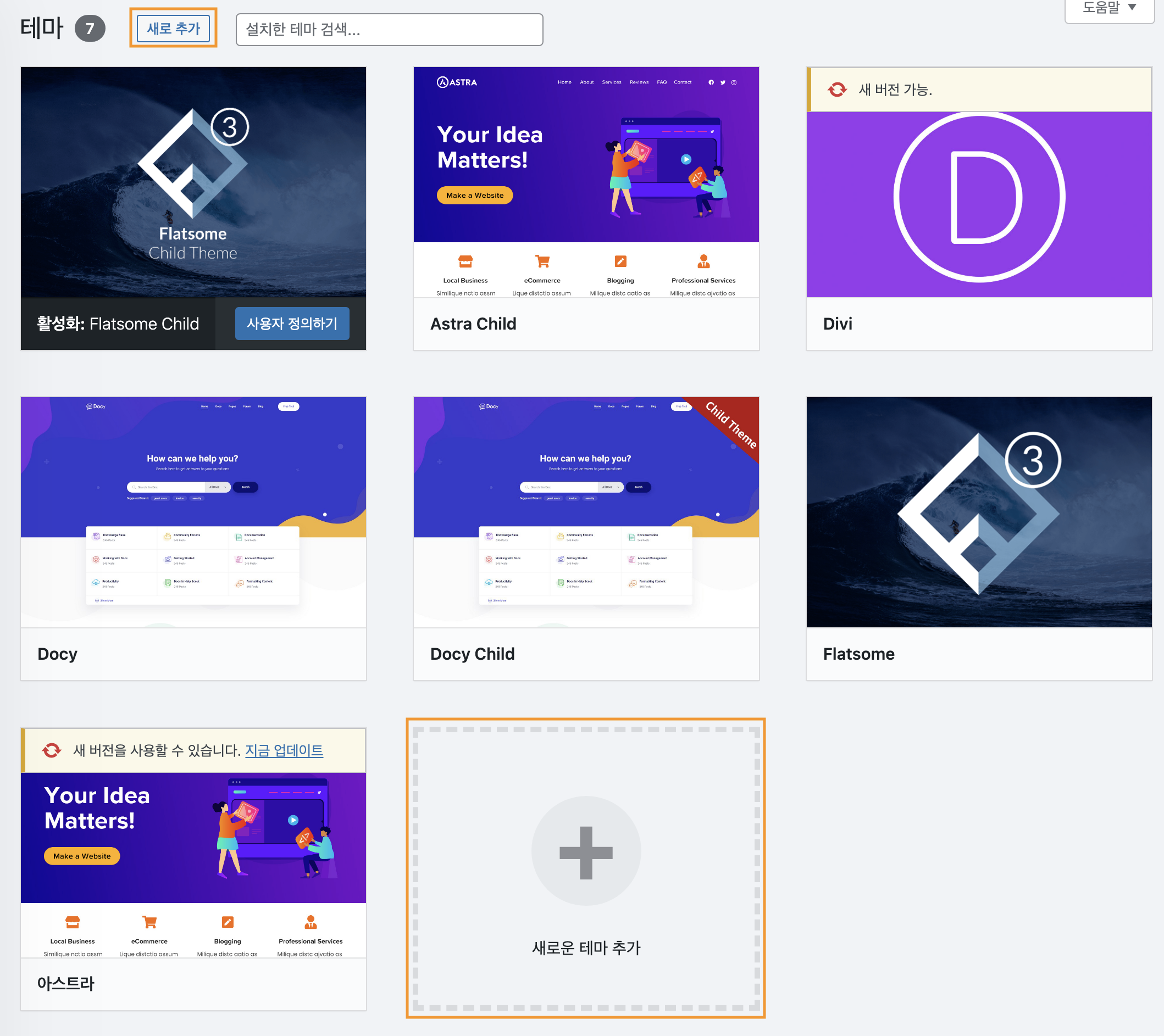 - 상단의 새로 추가 또는 새로운 테마 추가를 클릭합니다.