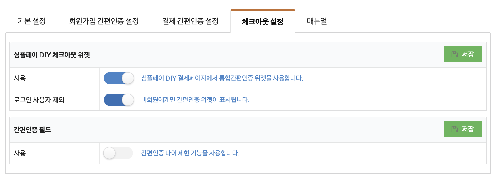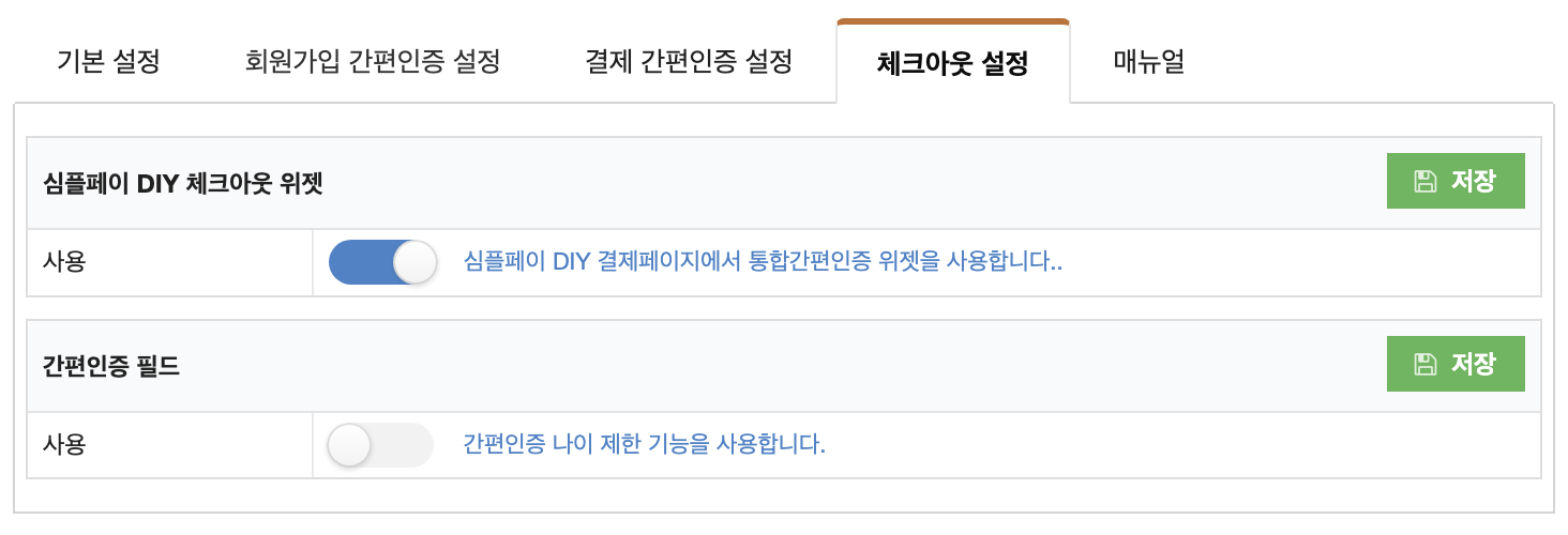 1. 심플페이 DIY 체크아웃 위젯 활성화