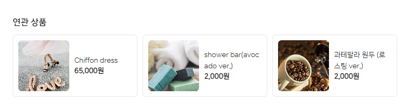 상품의 연결된 상품 – 교차 판매에 추가되어 있는 연관 상품을 표시해주는 숏코드입니다.