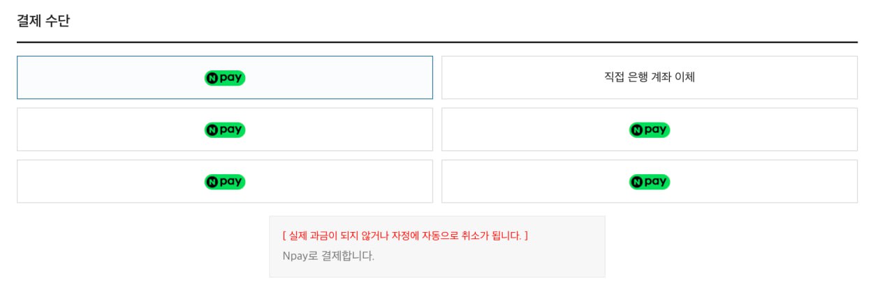 해당 버튼을 임의로 수정하여 이용하시는 경우 네이버페이 검수 시 반려 될 수 있으니 참고 해 주시기 바랍니다.