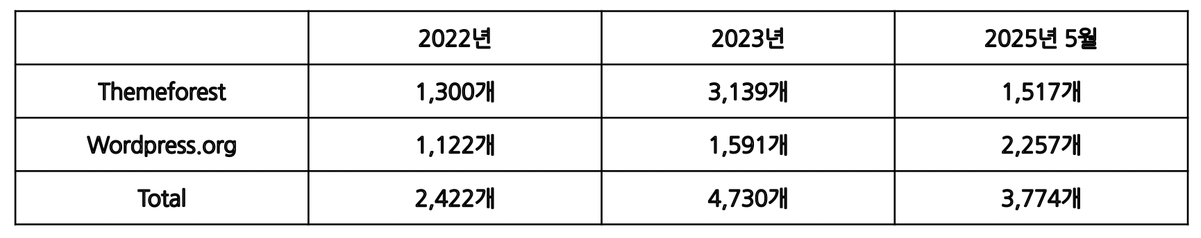 그외 무료 테마 및 테마 마켓 플레이스, 자체 사이트에서 테마를 판매하는 숫자를 포함하면 그 수는 훨씬 높아지게 됩니다.